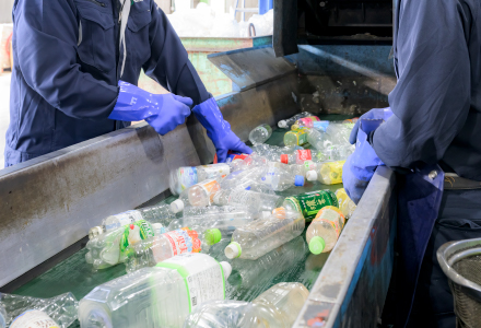 ボトルtoボトルの水平リサイクルにより、ペットボトルは約90%がペットボトルの再生原料となります。