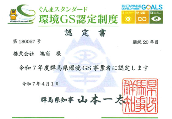 鴇商では、1都7県で産業廃棄物収集運搬業の優良認定を受けたほか、
